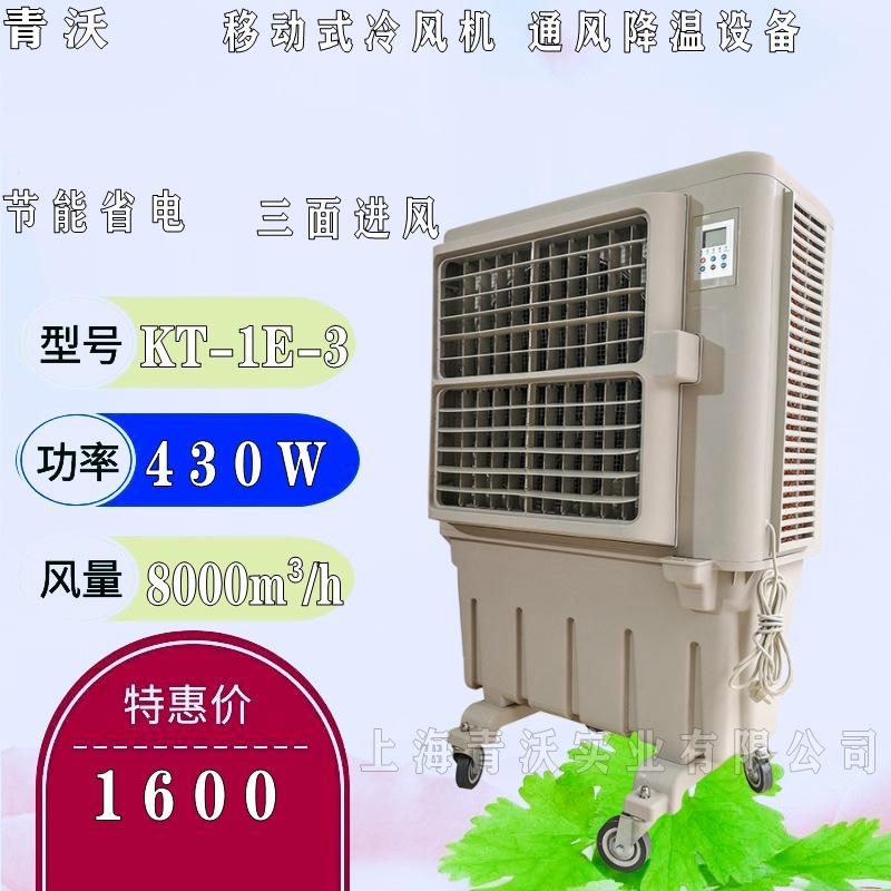 降温原理是由湿帘纸、水循环系统、送风机组成,具有降温效果明显,节能环保,安装简单、运行可靠等优点,可直接输送自然风及降温后的凉风,移动式冷风机出厂就是整机,打开包装就能用,无需费时费力安装,移动冷风机没有墙外悬挂的危险性。