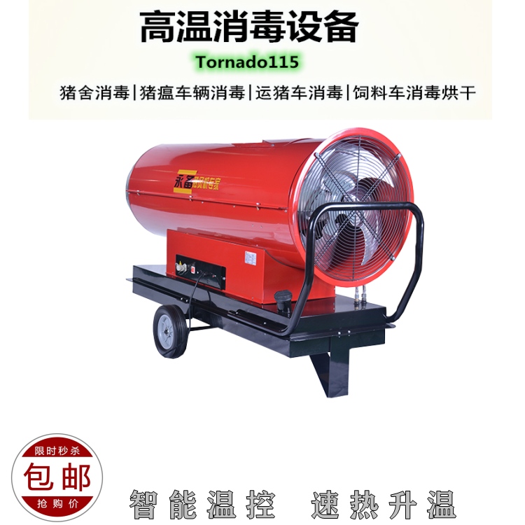 2、115kw的大出风量,热量大,加温迅速,操作简单移动方便,热量散步均匀;