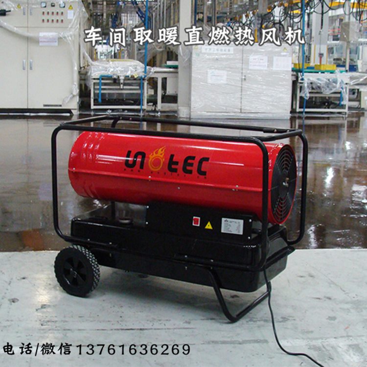 2、燃油热风机采用直燃式间接加热,升温迅速,热风干燥清新,使室内工作温湿环境大大改善,