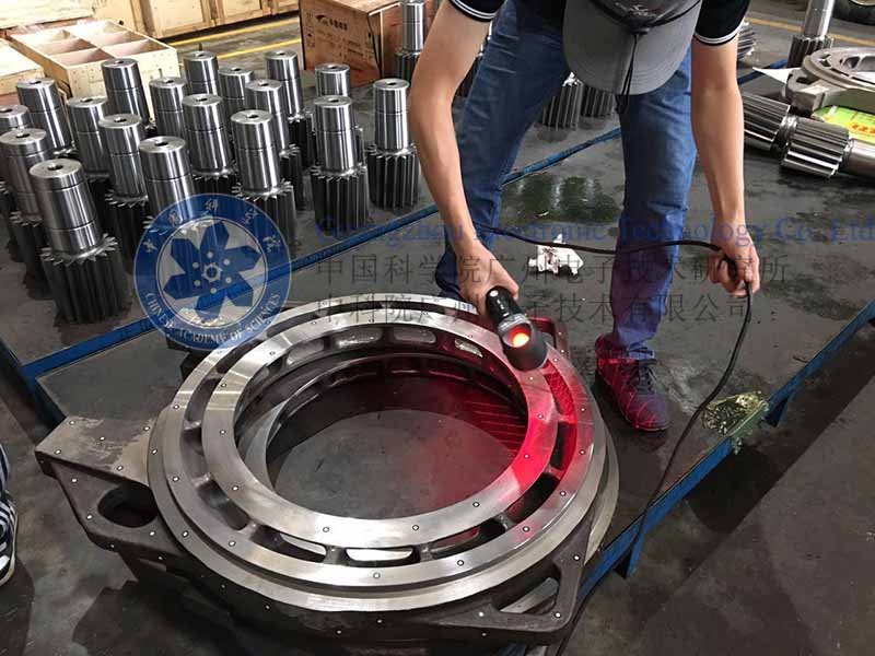 1. 电机零件表面三维扫描。我司工程师直接在零件所放置的车间进行检测,表面贴好定位点后,用Handyscan black elite对工件进行扫描,内容包括工件的型面、边界等。短短几分钟,即可完成整个所需表面的扫描。