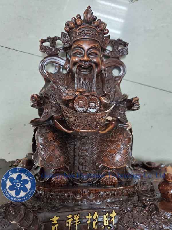 如下图就是此次需要扫描的财神木雕像,神像的胡须、衣裳等,都有非常细微的纹理和图案,因此不仅对扫描仪的精度有一定要求,同时还需要扫描仪的分辨率高,只有分辨率高,才能将这些细小的纹理表现出来。