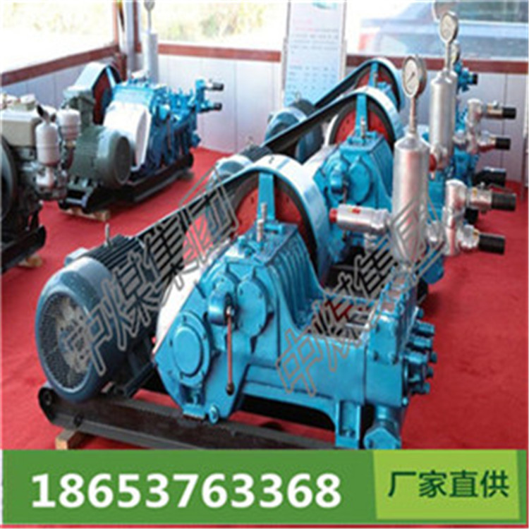 BW-150型泥浆泵是一种卧式三缸往复单作用活塞泵,可以换八种不同压力和流量,用于地质岩心钻探工程中向钻孔输送冲洗液(泥浆、清水、皂化液),适合1500米内小口径金刚石钻探配套,也可以用于中低压力、水泥浆灌注,本泵多档变速变量、节省能源、结构紧凑、体重轻、效率高、经久耐用、操作安全方、维修方便、维持费用低。该泵类主要用于地质钻探、地质工程施工配套及地基处理。