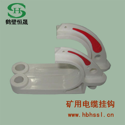 矿用挂接式电缆挂钩 井下连接式电缆挂钩 阻燃抗静电电缆挂钩使用及优点:鹤壁恒晟塑料制品有限公司(可根据客户需要生产不同规格的产品单体支柱柱鞋、柱帽、矿用电缆挂钩 、地辊、背板、垫板、衬托、衬套、衬轮、衬板、塑料棒、滑块、树木支撑架)抗静电阻燃性能稳定——(矿用挂接式电缆挂钩 井下连接式电缆挂钩 阻燃抗静电电缆挂钩)的抗静电剂及阻燃剂均匀分布在树脂本体内,抗静电及阻燃性能指标不会因时间的延长而受到影响。 重量轻、安装方便——重量轻(是钢管的1/7)、成本低、运输、安装快捷,用在井下安装时,不仅能降低工人劳动强度,提高工作效率,而且工程造价低。 抗老化、耐腐蚀——正常使用寿命可达50年,无需将下面挂钩和电缆拆下,可对挂钩单体直接随意拆装。 防摆动——组合后均在同一中心线上,不会左右摆动,更美观、更可靠。 健康环保——材料可回收利用。