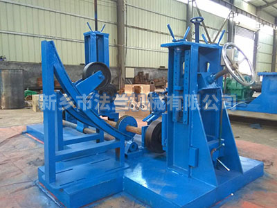 新乡市法兰机械有限公司研制开发的圆筒翻边机,该机结构形式为二模侧旋压式。下模安装在主动轴上,由电机带动,需要旋压工件放到上模上面,通过调节二端四个托辊和后顶轮控制圆管不让其左右、前后摆动。上模在45度角处向下方旋压,当上辊的下压力超高材料的屈服极-限时,便使所卷制的材料变形,根据要求当达到需要弧度或角度时,停止向下受力完成一次操作。