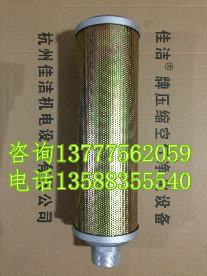 我公司消音器主要材料采用吸声频率性能好、耐温高的超细吸音玻璃棉为主体,以及美国的经特殊处理的消音滤材和其它材料组合而制成。通过消音器可降低噪音30分贝以上,完全达到进口产品的相同效果。并带有旁通安全阀,开启压力为2.0~2.2kgf/m2。当旁通安全阀打开,则必须更换消音过滤器的材料才能继续使用。该系列产品适宜于1.0MPa工作压力的吸干机配套。